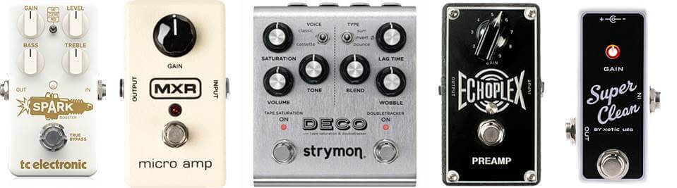 同じような使い方ができるブースターとしては、テープエコーの名機Maestro Echoplexのプリアンプ部を再現したXOTICのEP BOOSTERがあります。